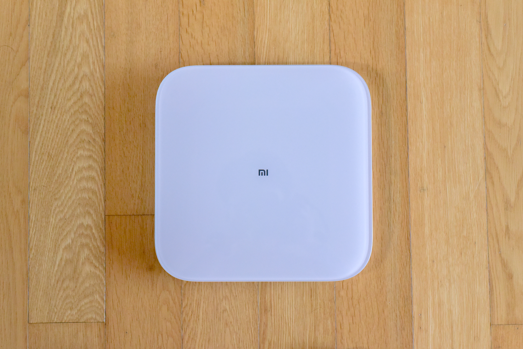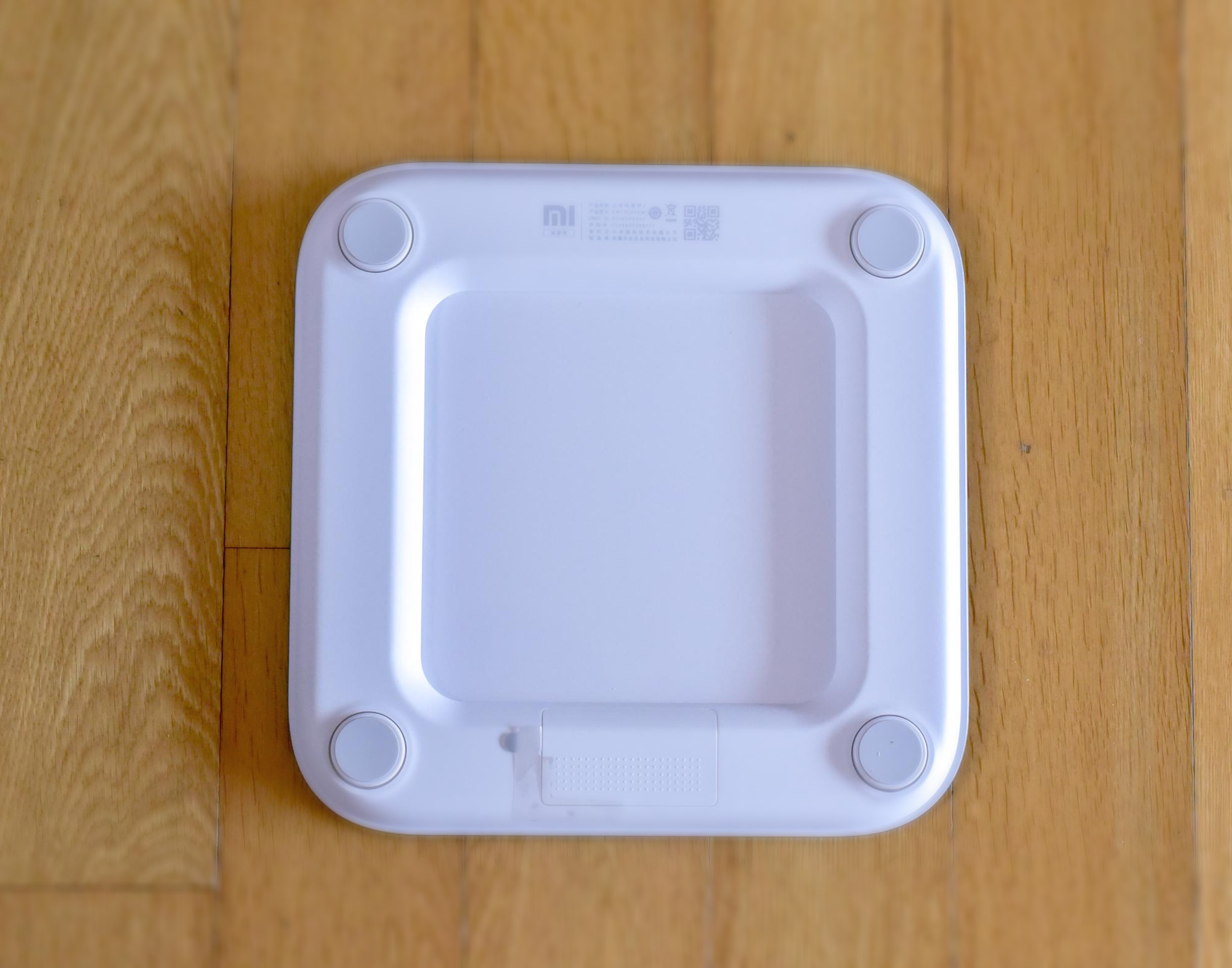 체중계 상판은 강화유리 재질로 되어 있고, 샤오미 로고 외에는 다른 기능적인 요소들은 보이지 않습니다. 체중계 KG 수는 어떻게 보는지 궁금해하실 분이 계실 것 같은데, 디스플레이가 내장되어 있습니다. 체중계의 전원을 키면 디스플레이가 켜집니다.