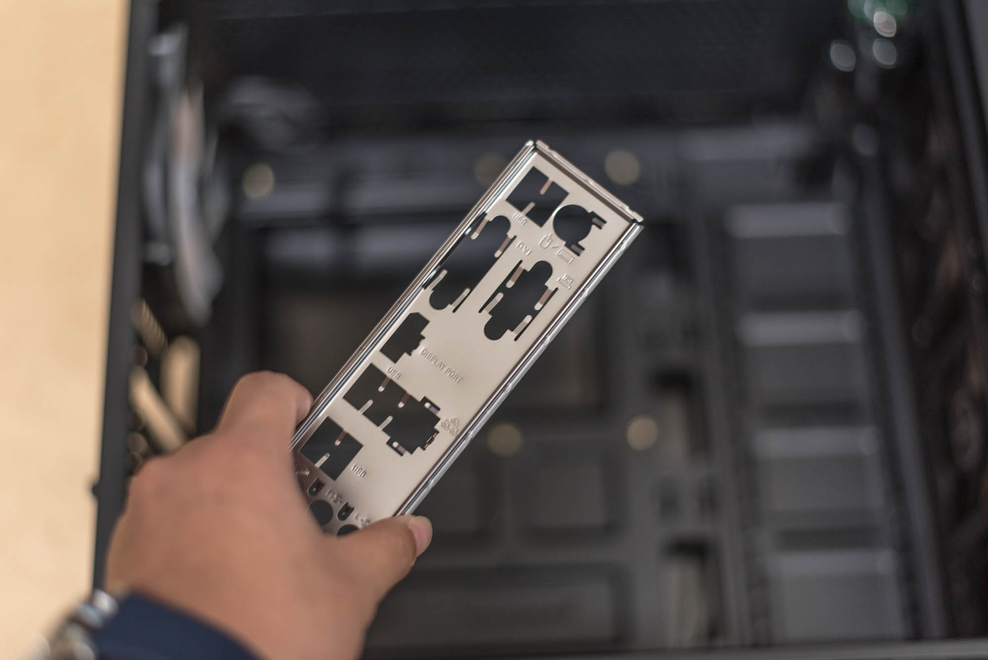 I/O 패널이라고 부르고 백패널이라고도 부르는 이 패널을 장착하고 난 뒤, 파워와 케이스 조립을 마칩니다.