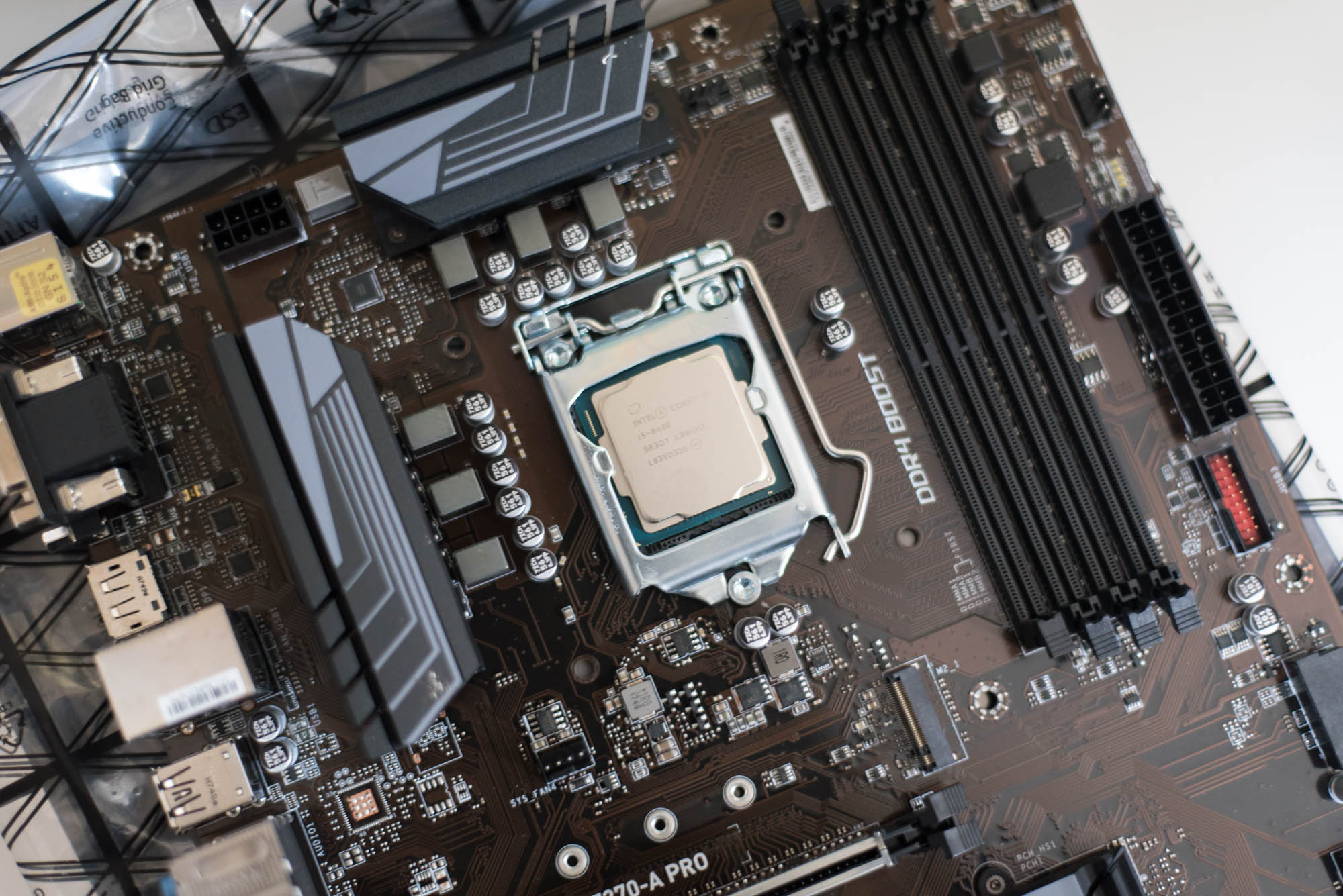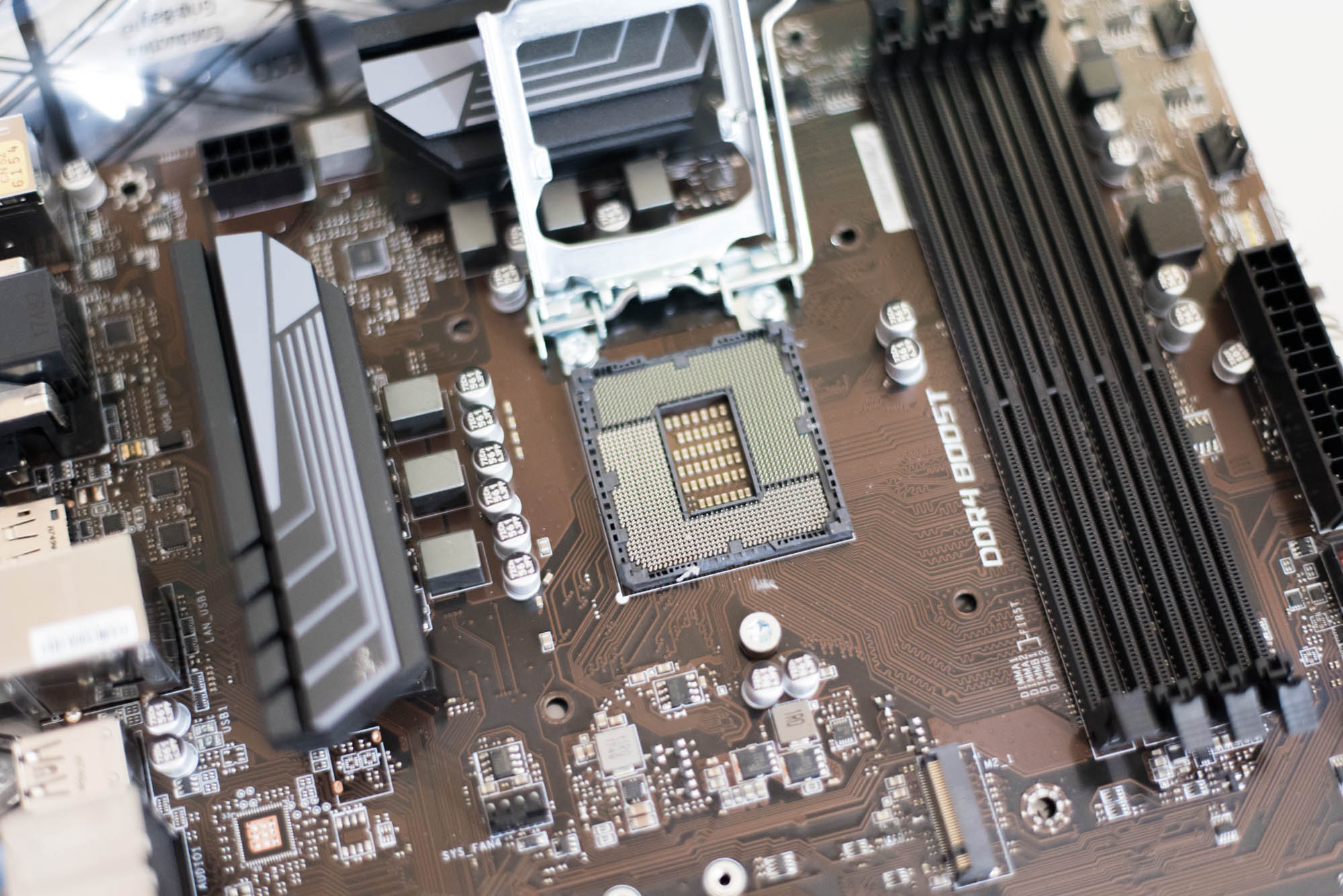 구입한 i5-8400 CPU를 넣고 고정시켜줍니다. (사실, 메인보드를 리퍼 상품으로 구입했는데 CPU 소켓 부분에 서멀구리스가 그대로 흘러들어가 있어서 빼내려고 고생 좀 했습니다. 앵간하면 메인보드는 중고나 리퍼는 거르거나 잘 살펴볼 필요가 있는 것 같습니다 ㅠㅜ)