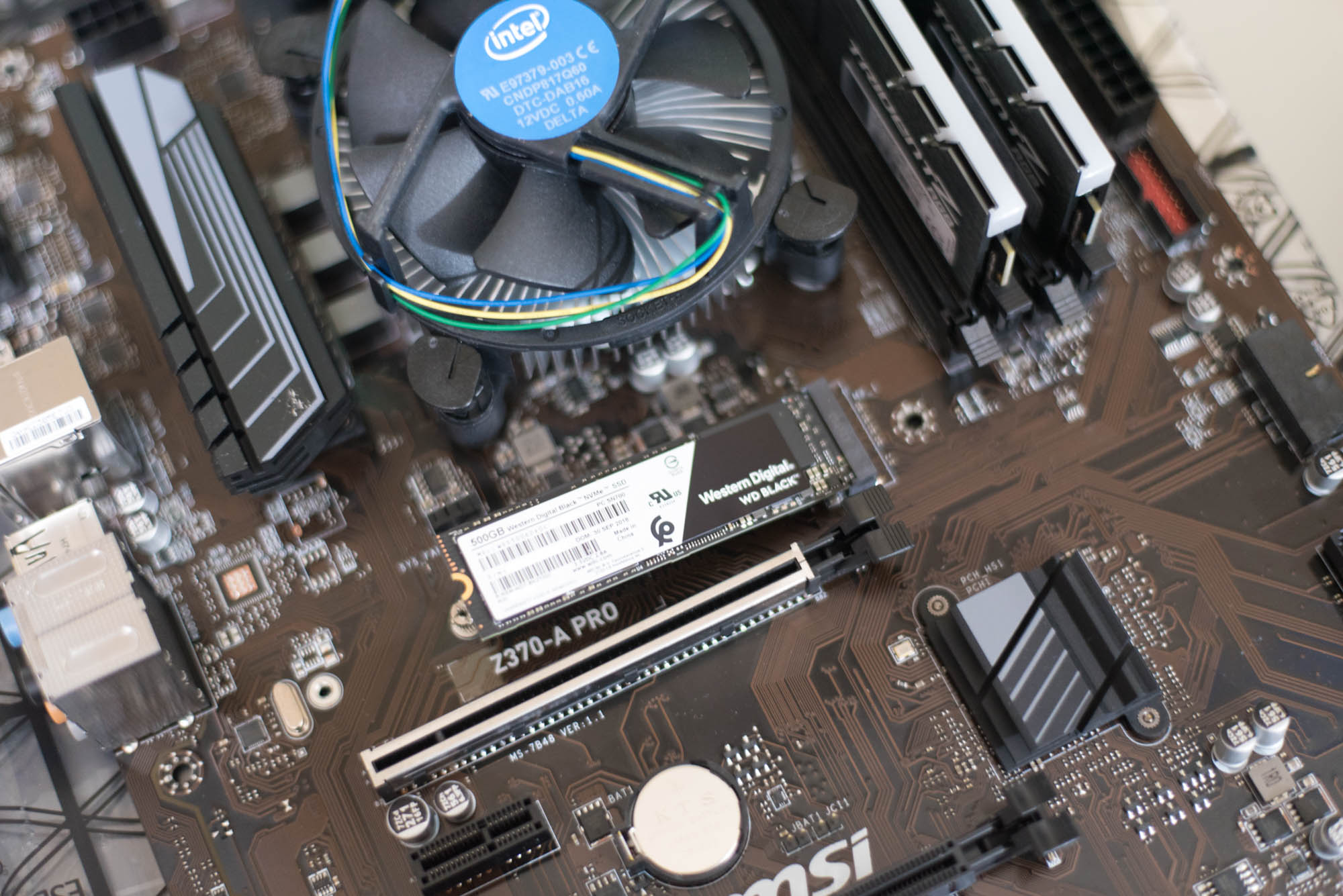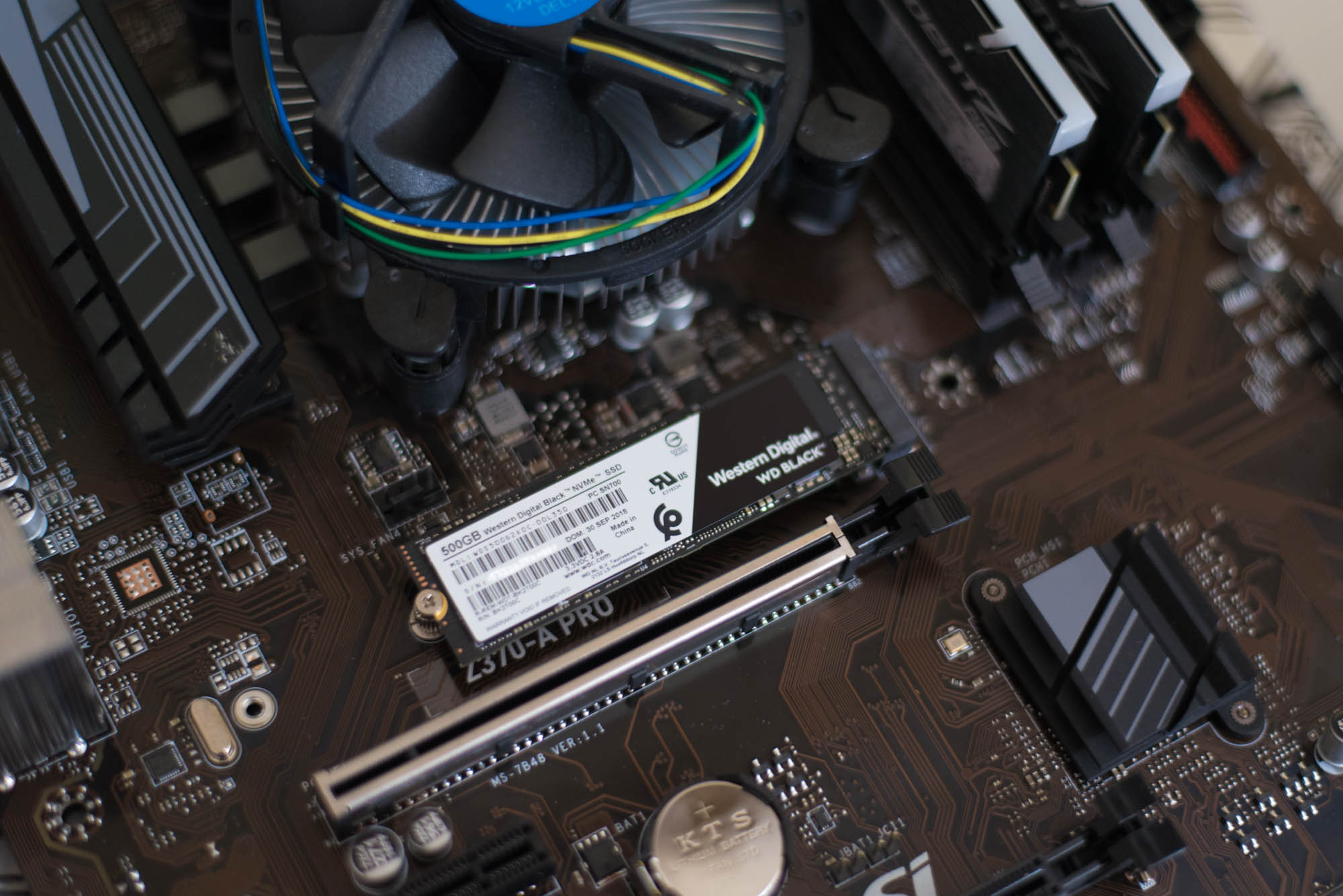 이제 저장장치를 달아줄 차례입니다. 일반 2.5인치 SATA 타입의 SSD를 구입할 수도 있으나 영상이나 사진 편집을 위한 빠른 속도를 필요로 하여 NVME SSD군 중에서 WD BLACK SSD 500GB 모델을 구입하였습니다.