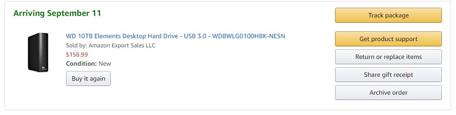 도착하게 되면 WD Elements 10TB 제품을 분해하고 적출해서 시놀로지 NAS에 추가하는 것을 포스팅으로 남겨보도록 하겠습니다. 덕분에 통장은 비었지만 저장공간은 빵빵해질 걸 생각하니 기분은 마냥 좋습니다.