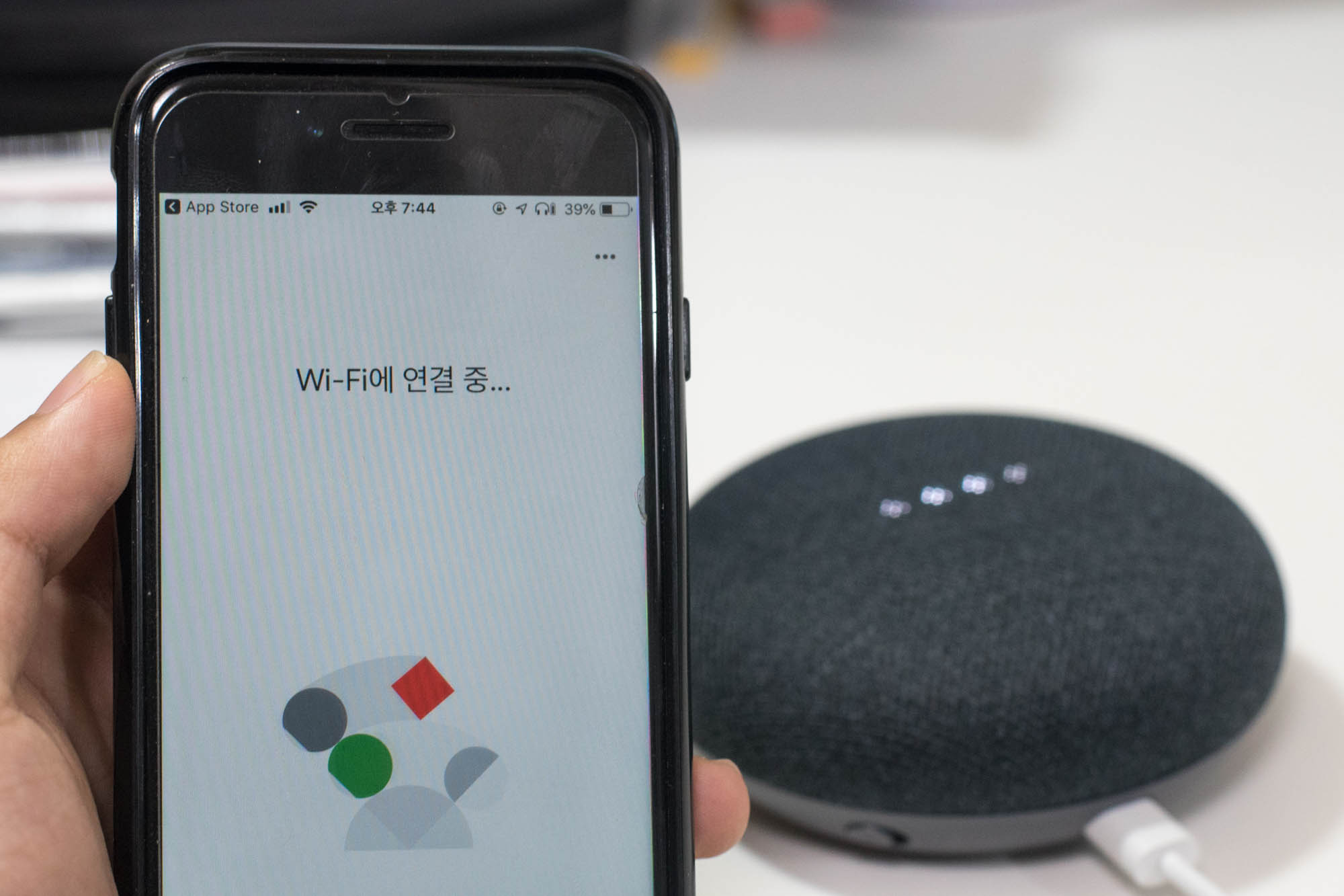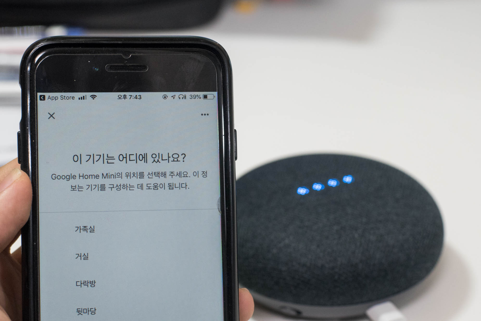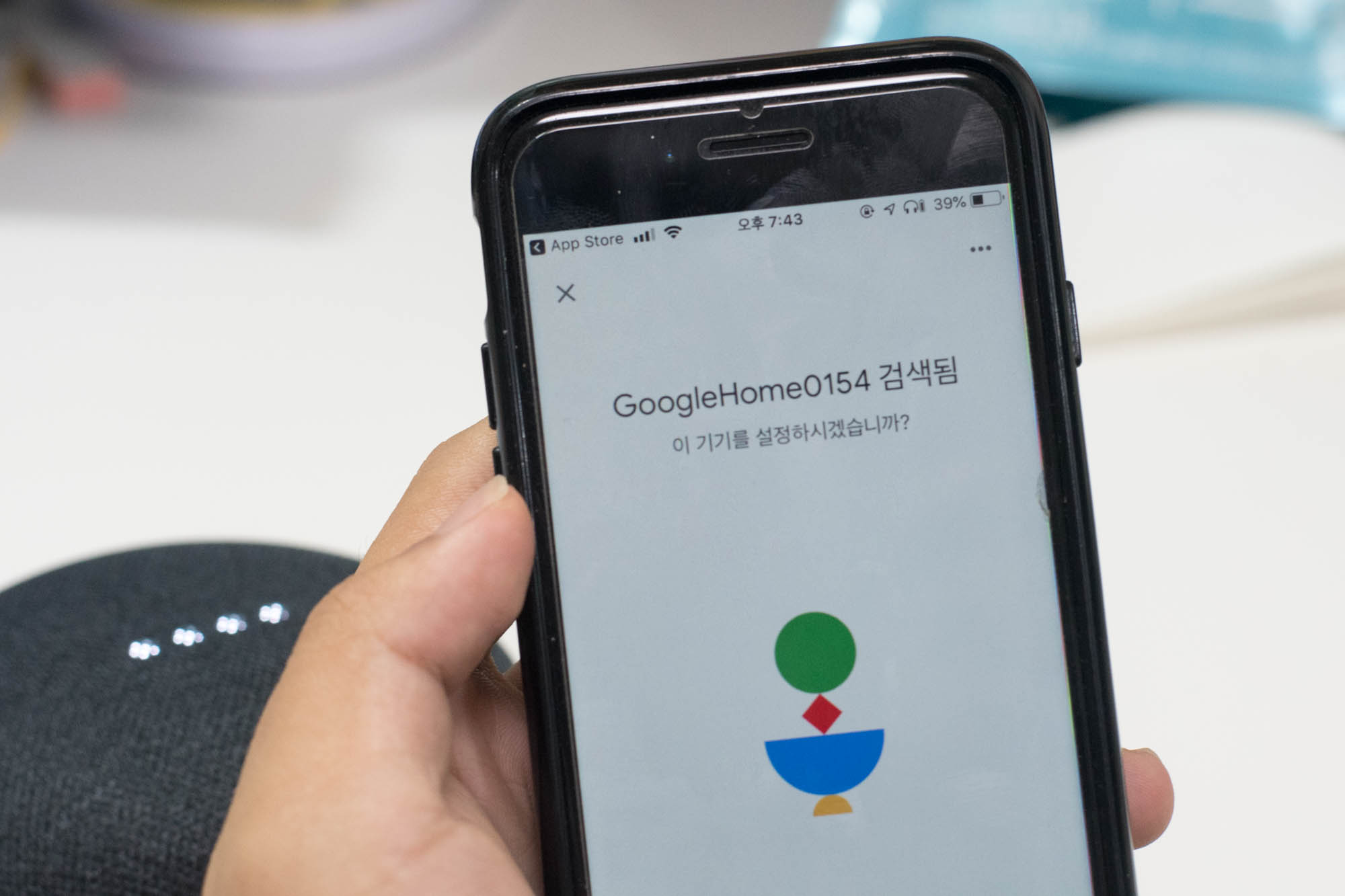 본격적으로 사용하기 위해, 전원을 인가하면 띠링띠링 소리가 나면서 시작할 준비를 하는데, 이 때 구글 홈 앱을 미리 깔아두면 좋습니다. 아니 그렇게 해야 제대로 쓸 수 있습니다.