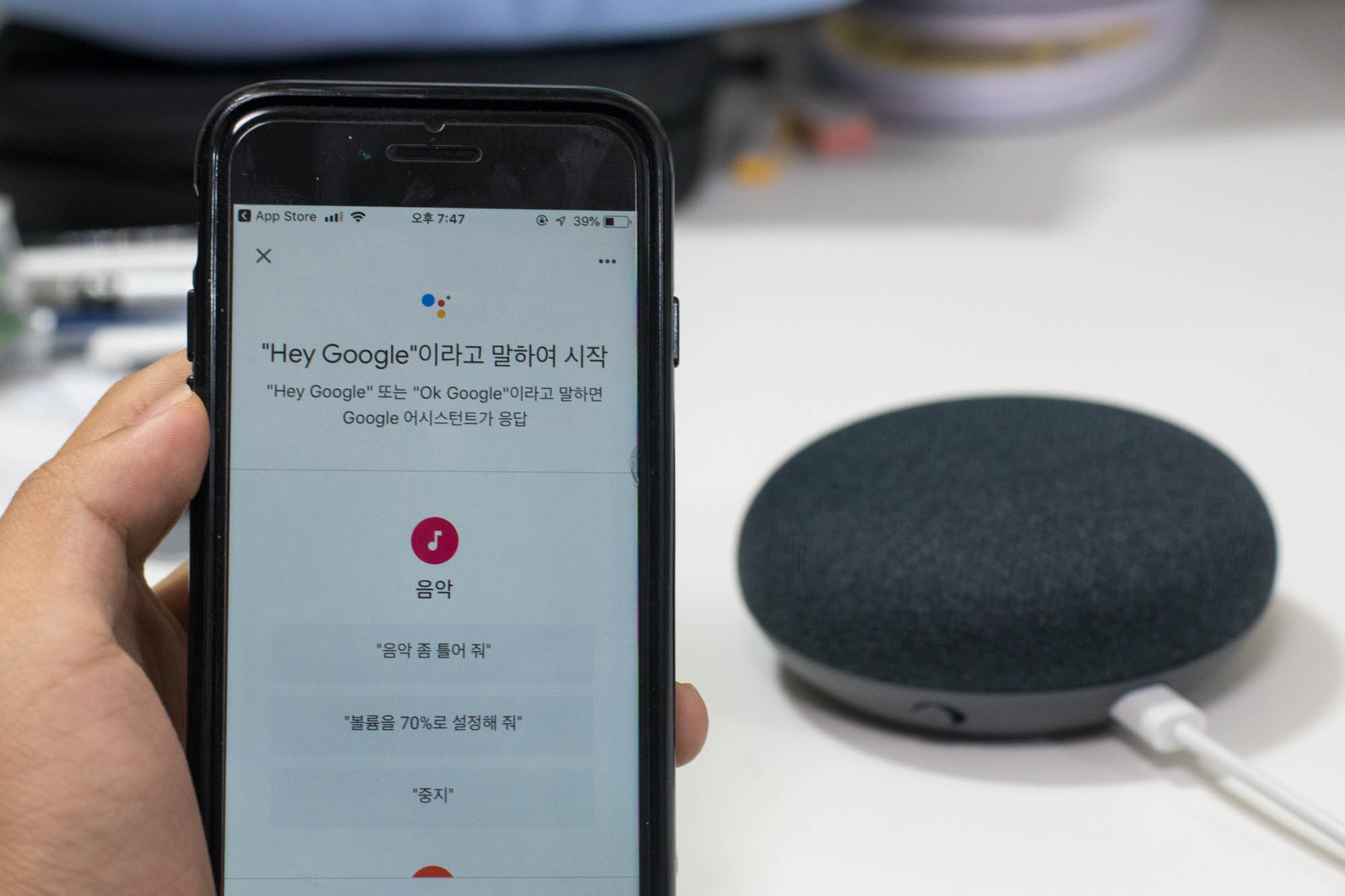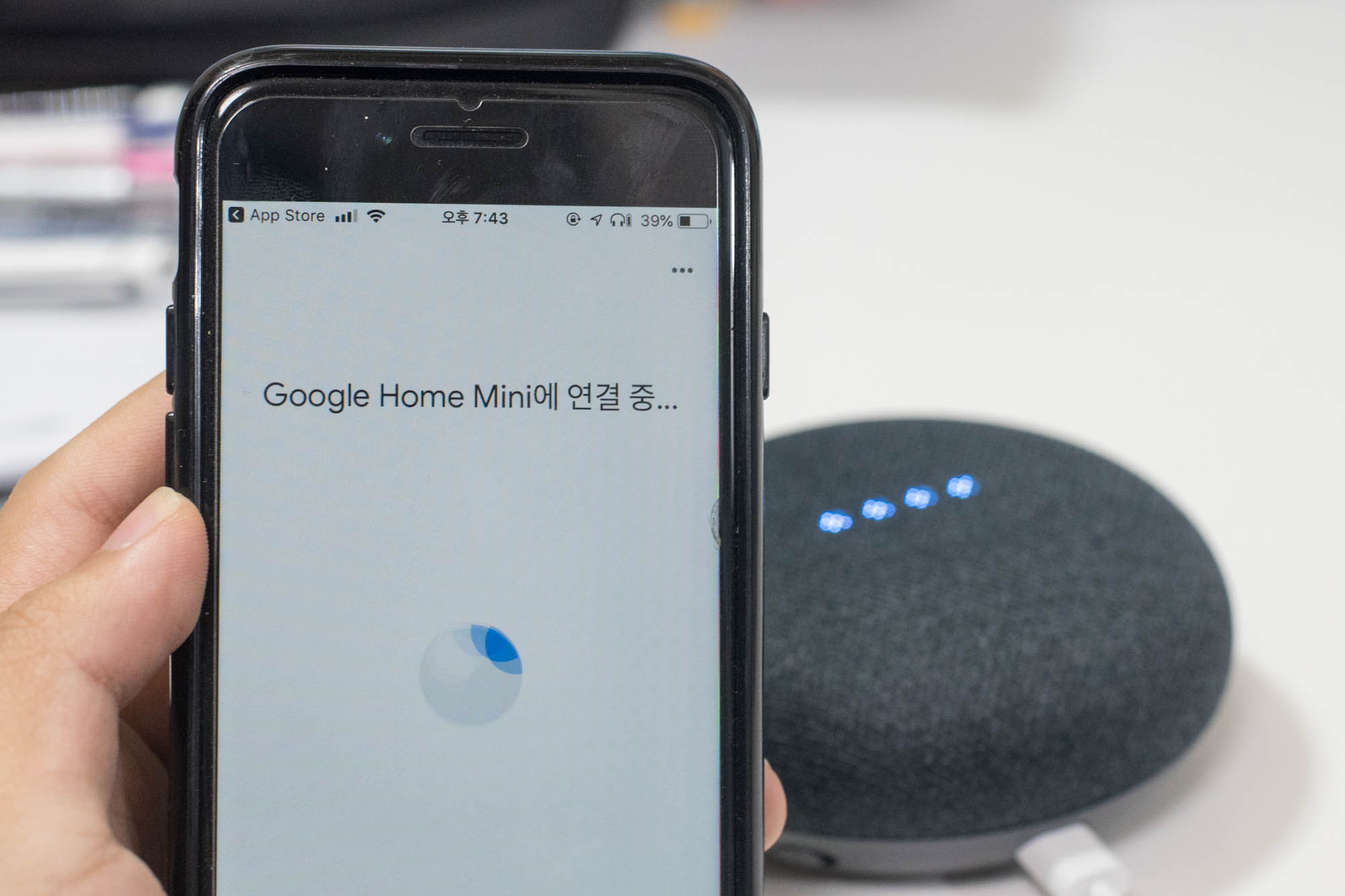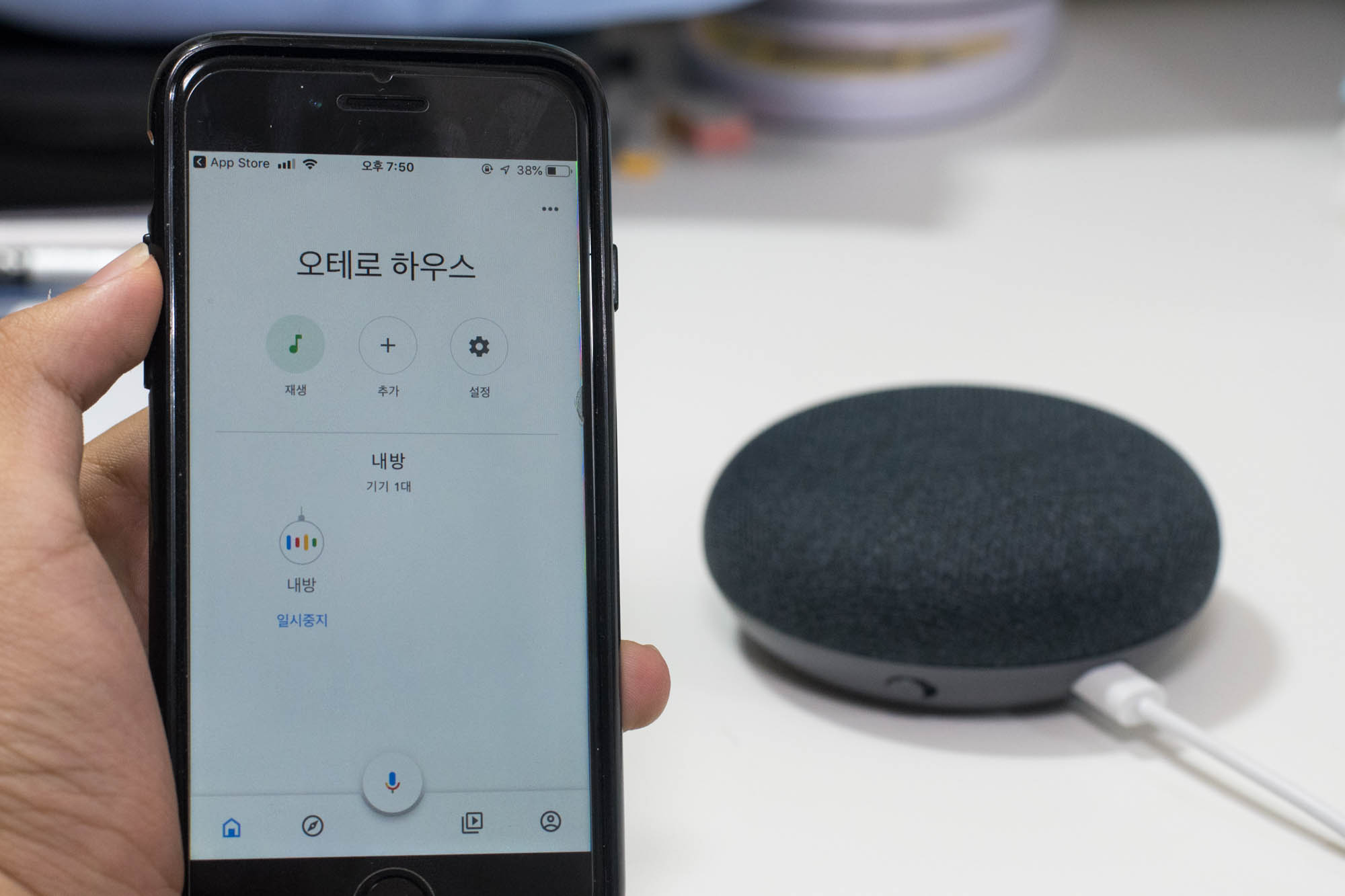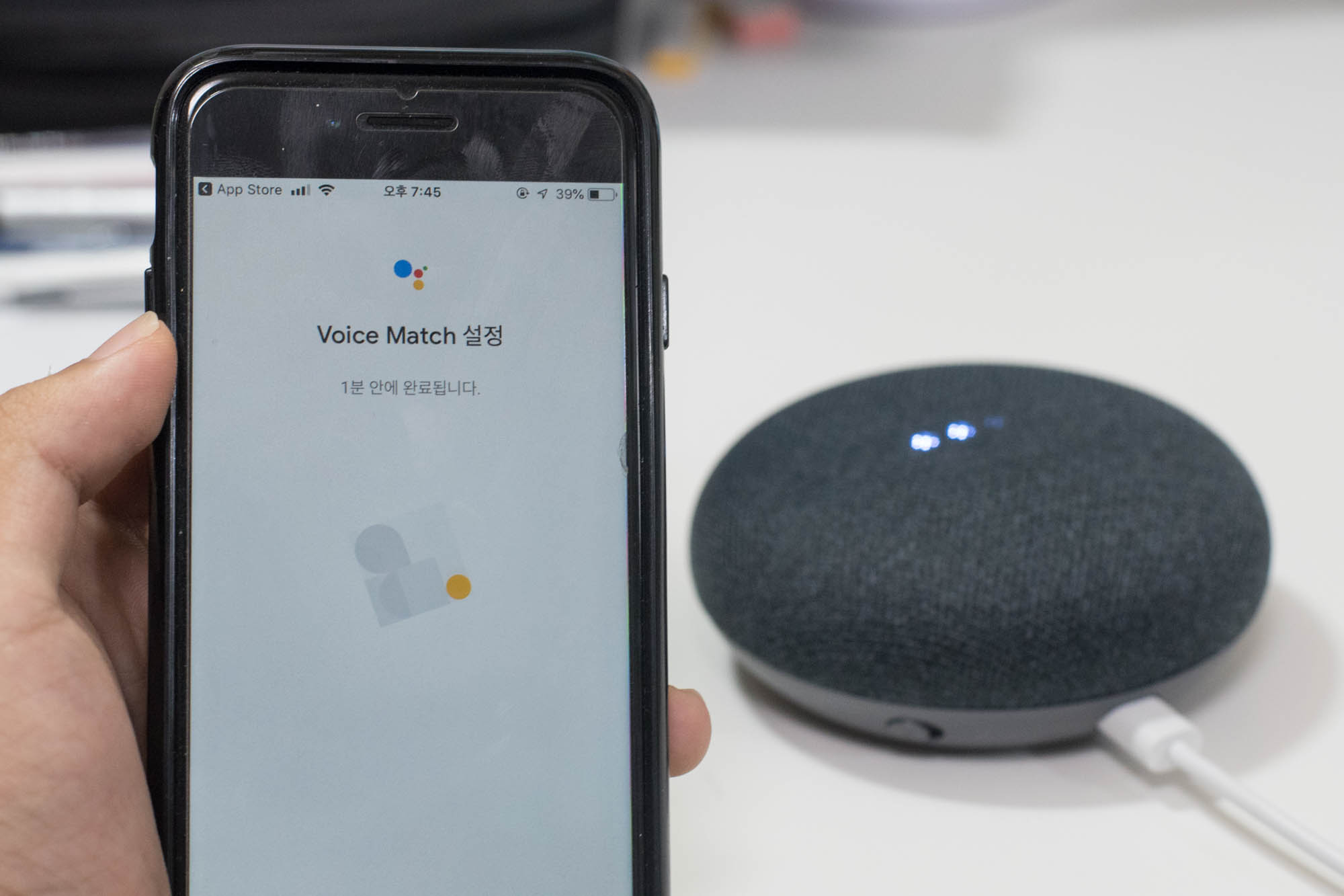 본격적으로 사용하기 위해, 전원을 인가하면 띠링띠링 소리가 나면서 시작할 준비를 하는데, 이 때 구글 홈 앱을 미리 깔아두면 좋습니다. 아니 그렇게 해야 제대로 쓸 수 있습니다.