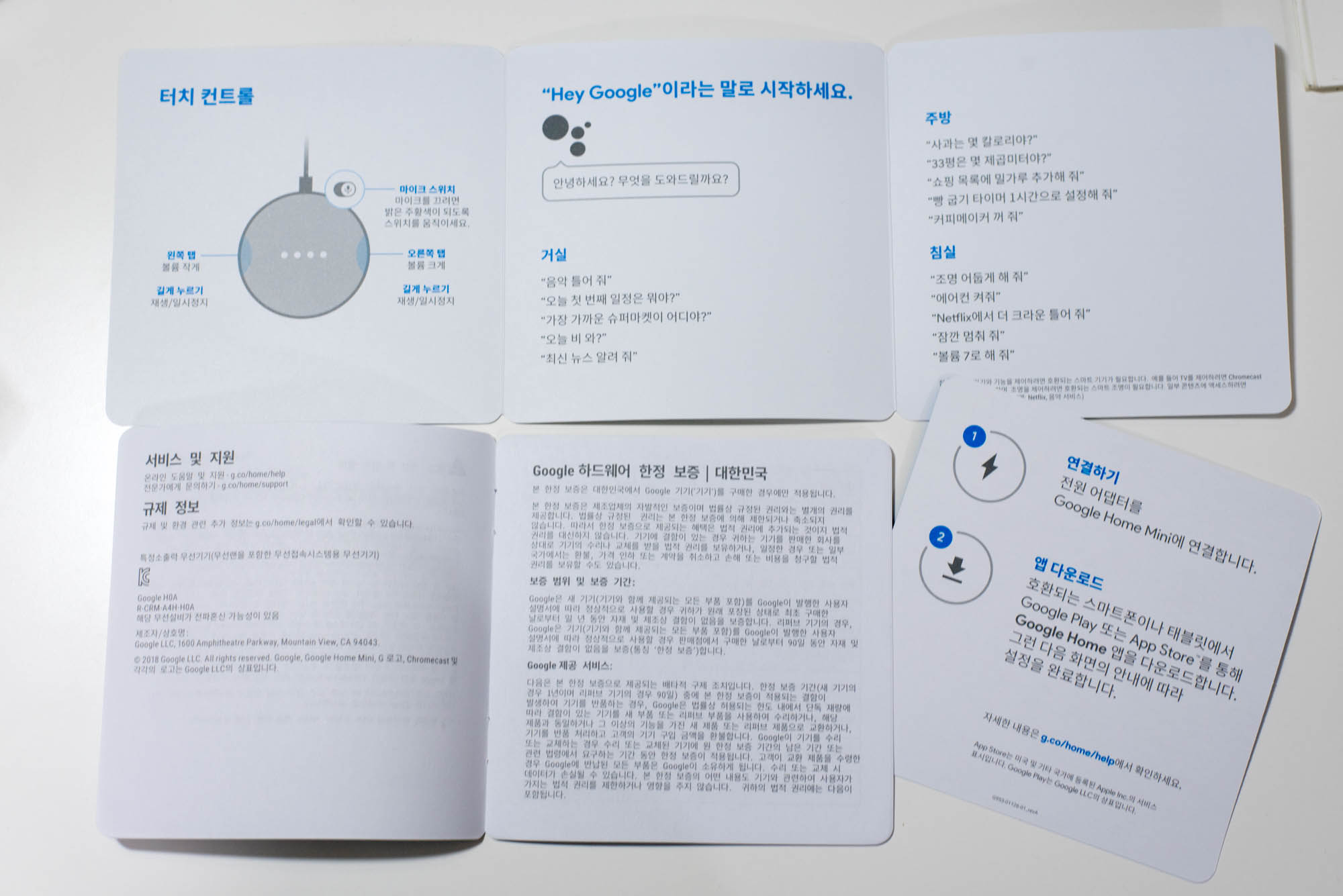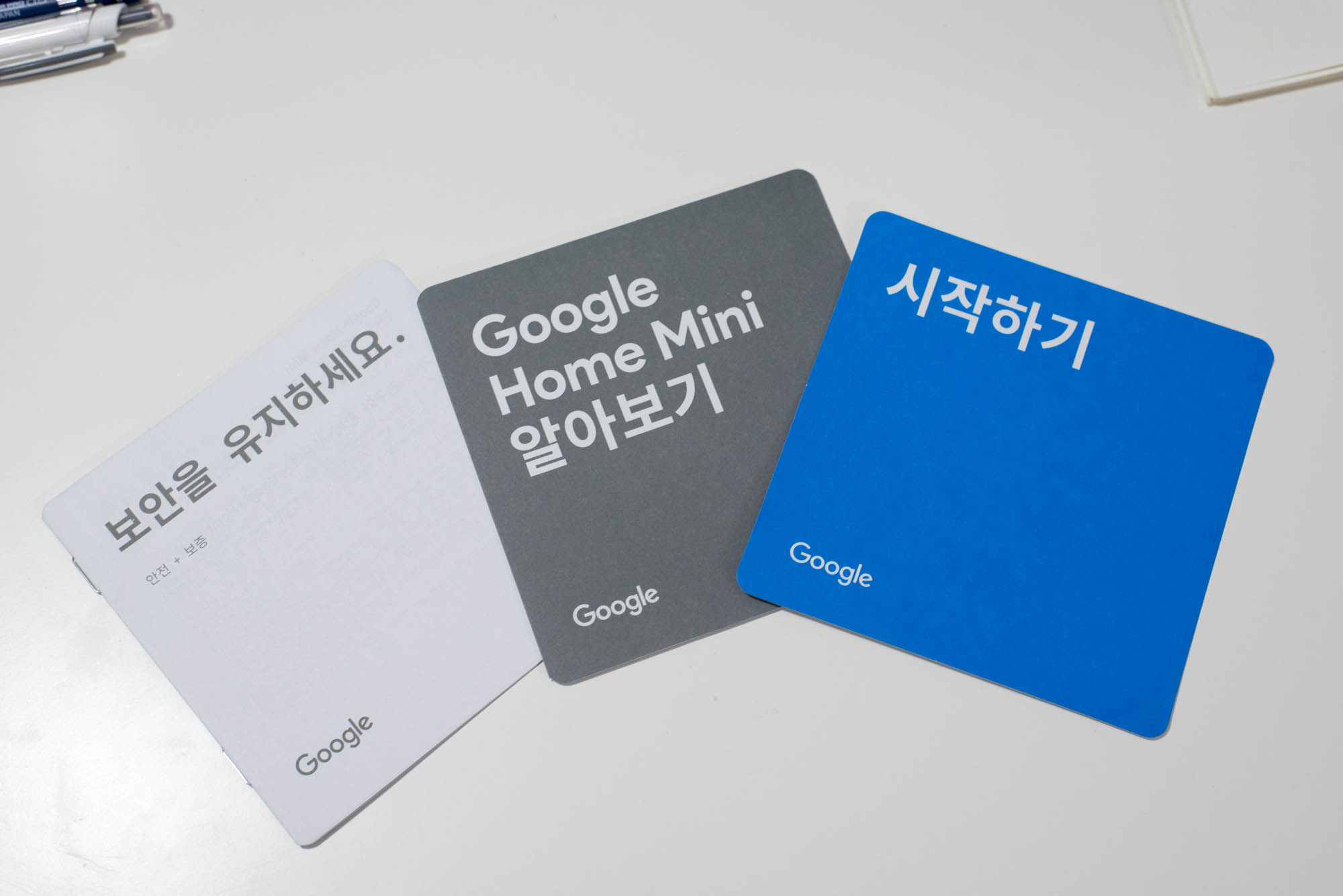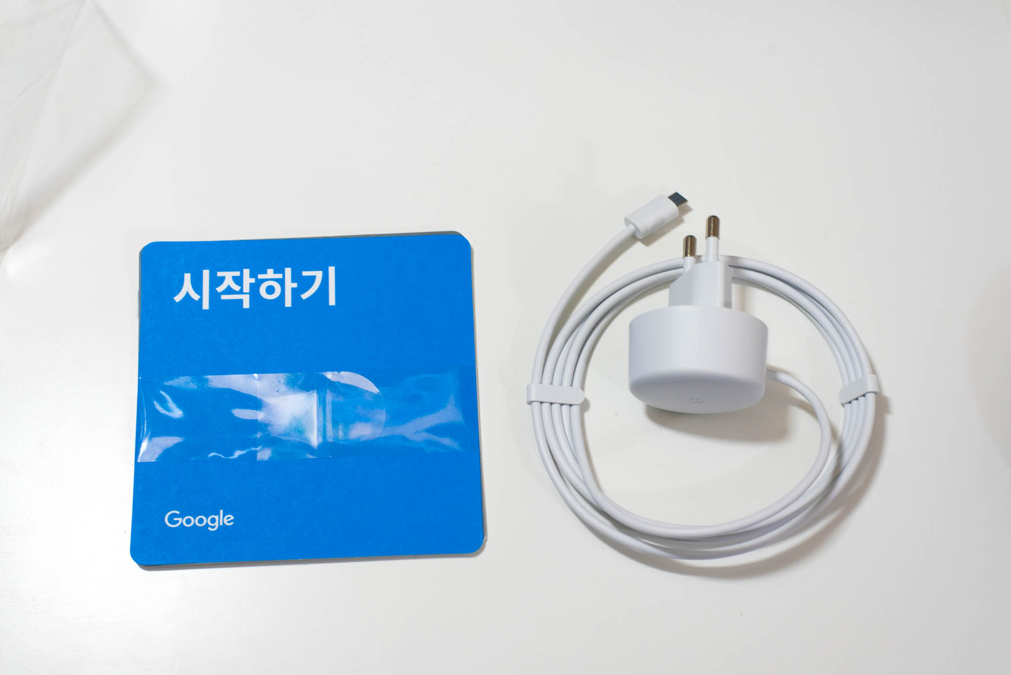 구성은 생각보다 단촐합니다. 구글 홈 미니 본체와 충전기가 들어있고, 그외 사용 설명서들이 함께 담겨 있습니다.