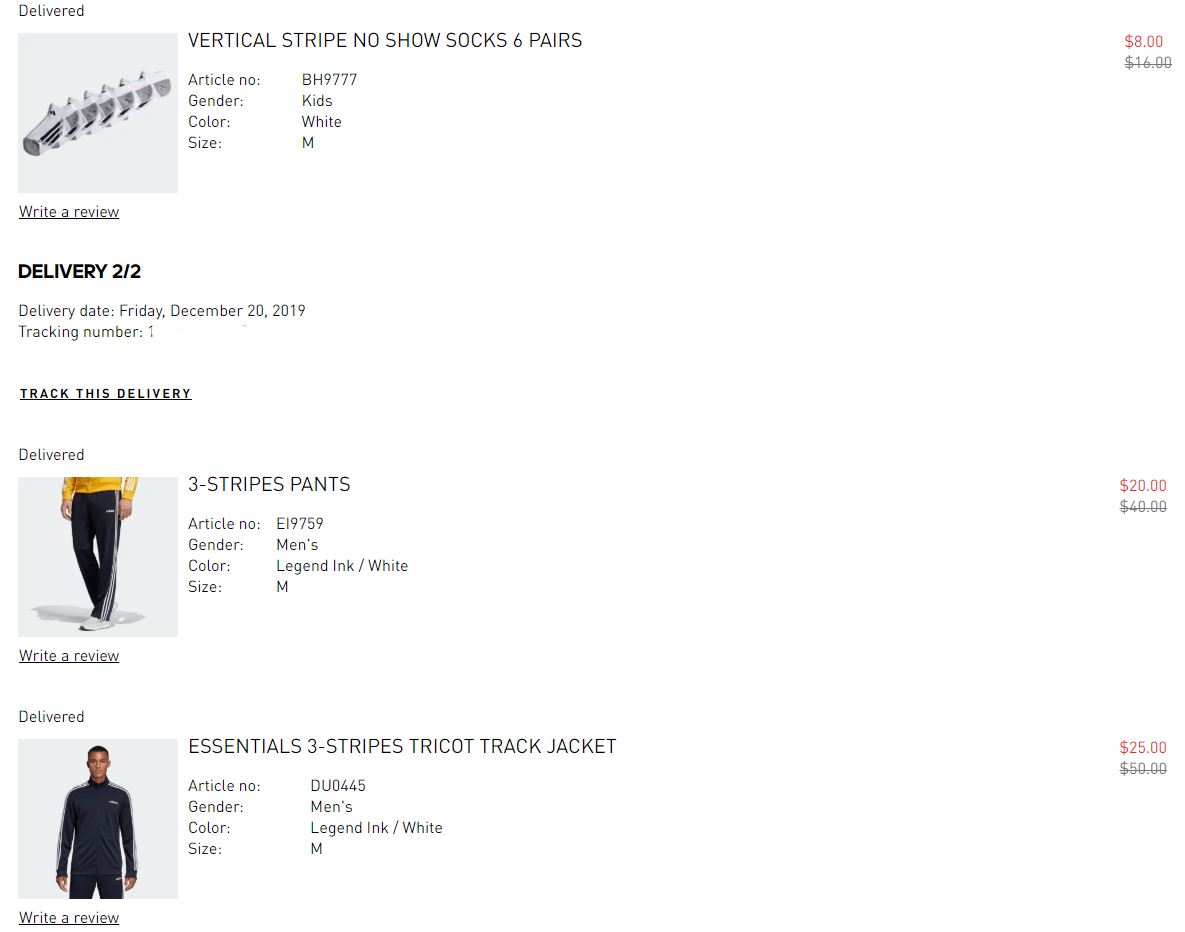 아디다스 사이버먼데이때인가, 40% 할인쿠폰을 뿌리고 있다고 하여 접속했는데 아니 무슨 30% 쿠폰밖에 적용되지 않아서 에이, 하고 그냥 나가려다가 그래도 이왕 한번 둘러볼까 하다가 구입한 것들입니다. 적당히 아디다스 츄리닝으로 입고다닐만한 거 색깔 맞춰서 사고, 양말도 샀는데(양말은 키즈..라니..사이즈가..작겠..다..) 미국 사이즈가 대부분 바지의 경우는 기장이 길어서 수선하고 입어야 한다길래 수선할 생각까지 하고 있습니다. 이건 3종까지 해서 약 40달러 남짓에 구입했습니다.