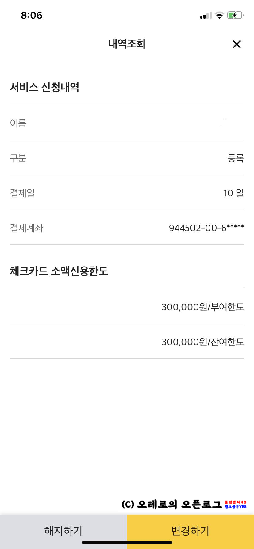 위 내용이 핵심입니다. 이 다음에는 결제일을 잘 확인하시고 결제할 대금을 계좌잔고에 잘 넣어두시면 끝입니다.