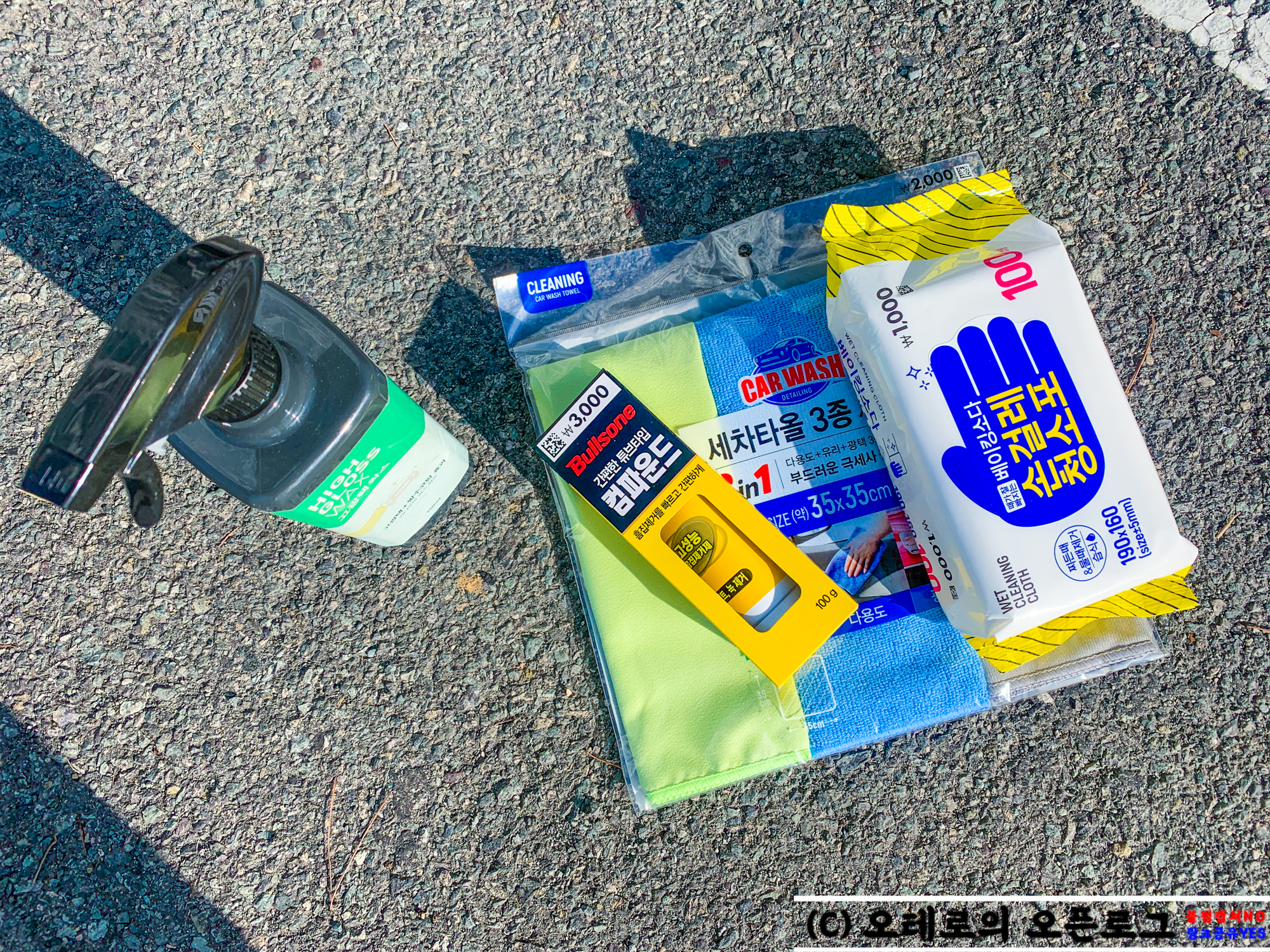 저는 집에 남아있는 차량용 물왁스와 세차 타올, 청소포를 준비했는데 사실 이런 것들 다필요없이 컴파운드와 물티슈와 이번에 하나 막쓸 타올정도 하나만 있으면 됩니다. 집에 물티슈나 걸레 타올 같은 건 하나 즈음 있으실 테니 다이소에서 3천원짜리 컴파운드 하나만 구비하시면 흠집 제거용 준비물은 끝입니다.