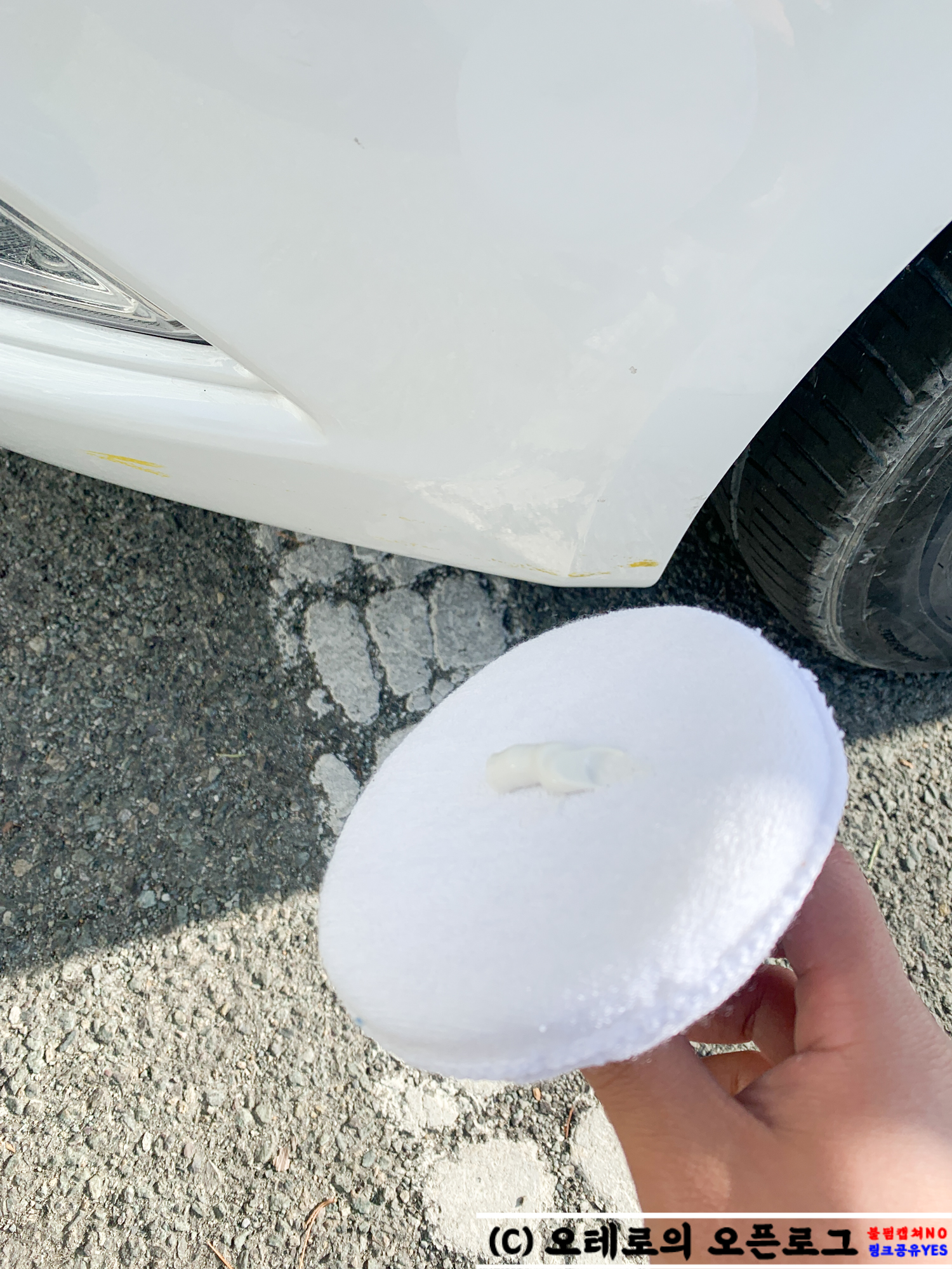이렇게 컴파운드로 문지르고 다 했다~ 하고 끝낼 수 있지만, 마무리로 완성도를 높이려면 마른 타월로 표면에 남은 컴파운드를 싹 제거하고 저렴한 왁스라도 도포해주는 것이 좋습니다. 사정이 안된다면 표면의 남아있는 컴파운드만 타월로 싹 제거해주는 것은 꼭 하시기 바랍니다.