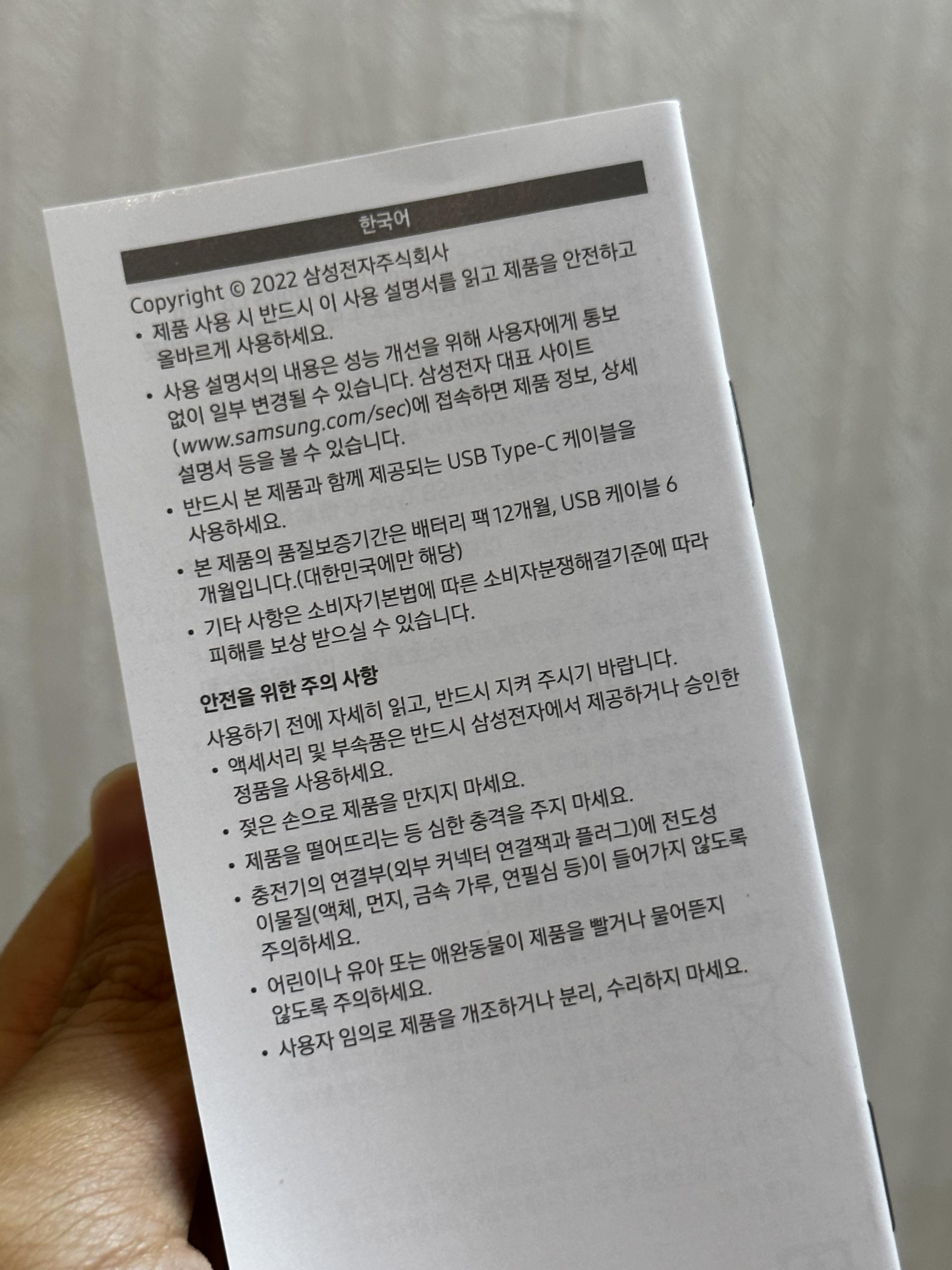 보증기간의 경우 배터리팩은 1년이며 케이블은 6개월인데, 가까운 삼성 서비스센터에서 보증을 받을 수 있다는 건 장점이 되겠습니다.