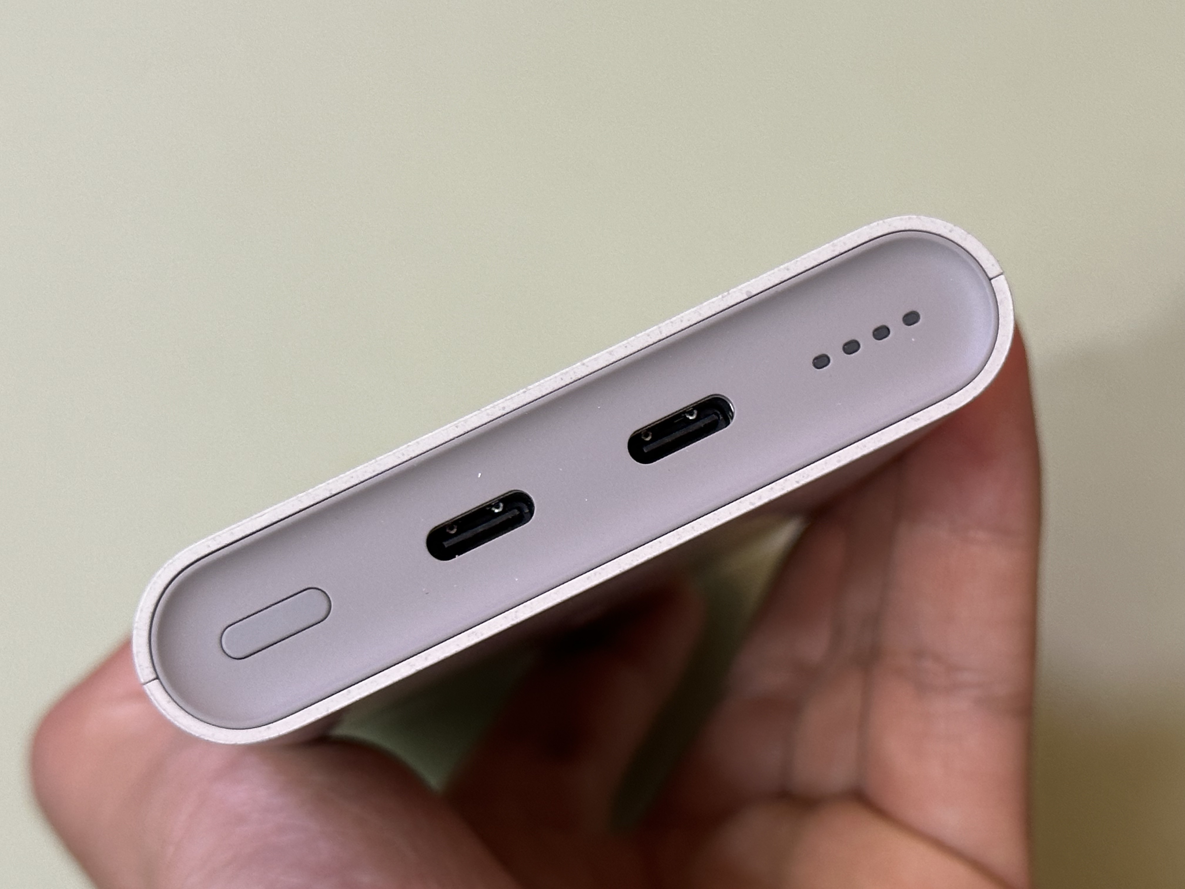이 보조배터리의 경우에는 제가 구매했을 때엔 3만원 중후반에 구입했으나 현재는 3만원 초반에도 구매 가능한 실정입니다. 포트 구성에서는 USB-A 포트가 한 개도 없으며 오직 C포트가 2개인 단자 구성입니다. 입력 전력은 18W이며 최대 출력은 25W를 지원하며 PPS 충전을 지원하고 있습니다. C 포트 2개와 PPS 25W 고속 충전이 주요 스펙이라고 볼 수 있겠습니다.