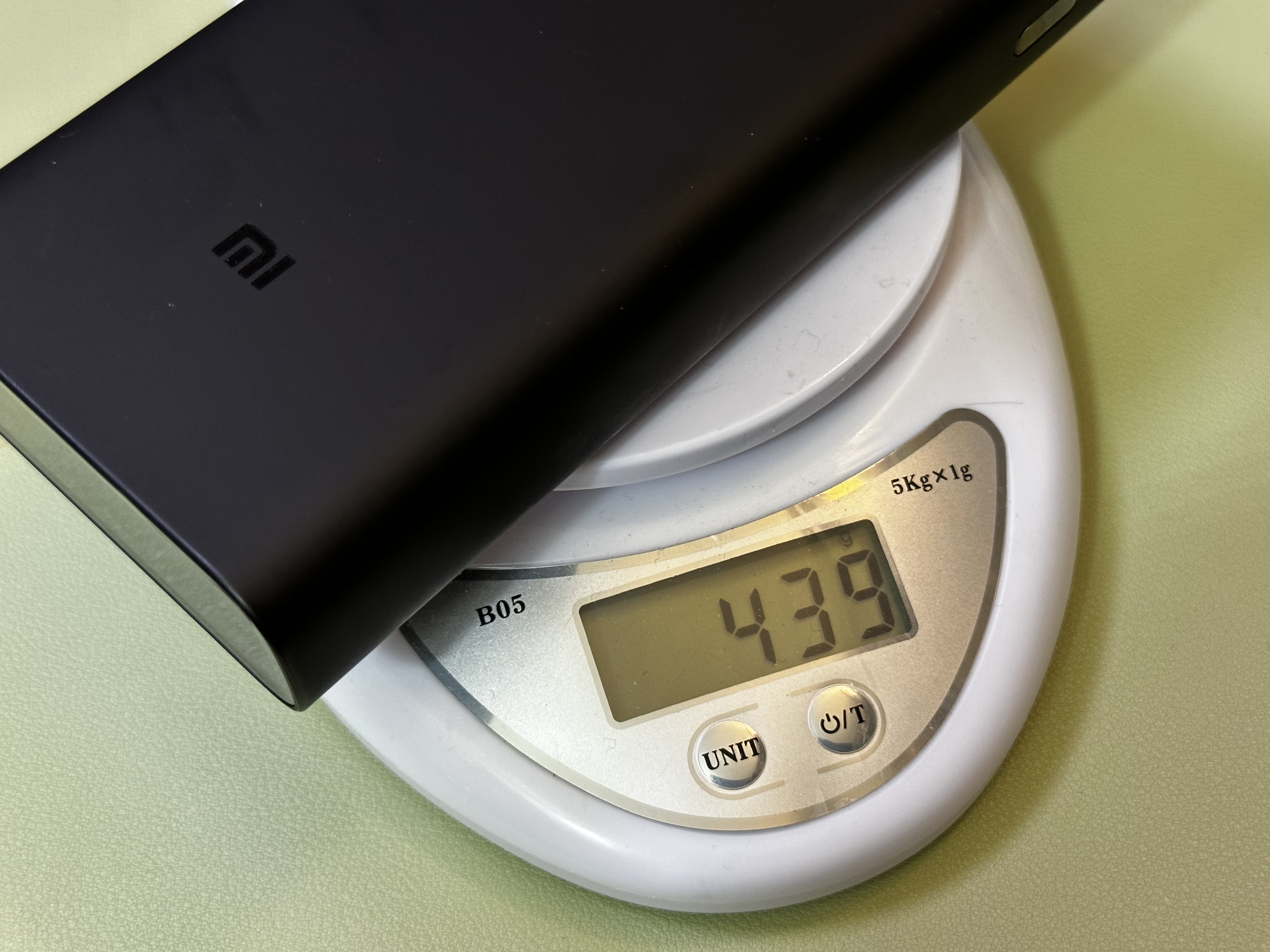 용량 차이를 고려하면 무게 차이는 당연하지만, 기존 샤오미 보조배터리 20000mAh 와 무게를 비교해보면 2배 이상의 차이가 나며 동급 대비해서도 가벼운 축에 속합니다.